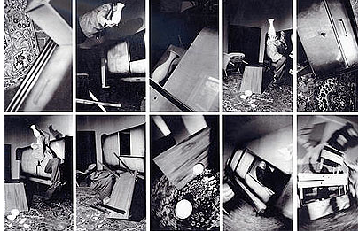 Le ton est donné, les travaux des Blume accumuleront les accidents en tout genre. Posture qui les oppose en tout point à un autre couple de la photographie d’outre-Rhin, les Becher, chefs de file de l’école de Düsseldorf, des quasi-contemporains qui, eux, ont prôné l’objectivité, la raideur distante des architectures industrielles toujours envisagées selon le même angle de vue et selon un protocole immuable. Effectivement, entre les châteaux d’eau des Becher et les plaisanteries insatiables des Blume, on ne navigue pas dans les mêmes eaux. Austérité contre gaîté peut-être, mais Anna et Bernhard Blume sont loin de se fier aux seuls délices de la contrepèterie. Toutefois, leur dispositif n’a rien à envier à la rigueur des Becher, il conjugue seulement d’autres références. Notamment leur attirance pour l’occultisme, le paranormal et autres états limites qui, en effet, les détournent de cette école de Düsseldorf focalisée sur l’aspect documentaire de la photographie. En Allemagne, à la fin du XIXe et dans les premières décennies du siècle suivant, la représentation des phénomènes délirants et des esprits frappeurs avait provoqué un engouement considérable, qui s’était ensuite quelque peu délité. Dans le droit-fil de cet intérêt, un institut créé en 1950, l’IGPP (Institut pour les zones frontières de la psychologie et de l’hygiène mentale), recueille les archives de ces anomalies psychiques, les analyse et tente d’aider les personnes tourmentées par ces visions indésirables. Hans Bender (1907-1991), son fondateur, n’hésitait pas à reconstituer et à faire photographier la scène de ces moments de terreur où les objets s’en prenaient à leurs propriétaires désemparés. Les Blume ont pu voir sur les clichés réunis par Bender des petits pains qui prennent la clé des champs ou des tapis mués en serpents qui se tortillent de rire ou de frayeur. Voici donc leurs sources dûment signalées par l’impeccable catalogue (1) de Beaubourg. Cette fascination va être mise au service de leur démarche créative et fonctionnera comme un véritable mode d’emploi dont bien sûr ils détiennent les clés. Car et c’est là où les choses se corsent, ce qui peut apparaître de prime abord comme un artifice constitue le nœud de l’œuvre.