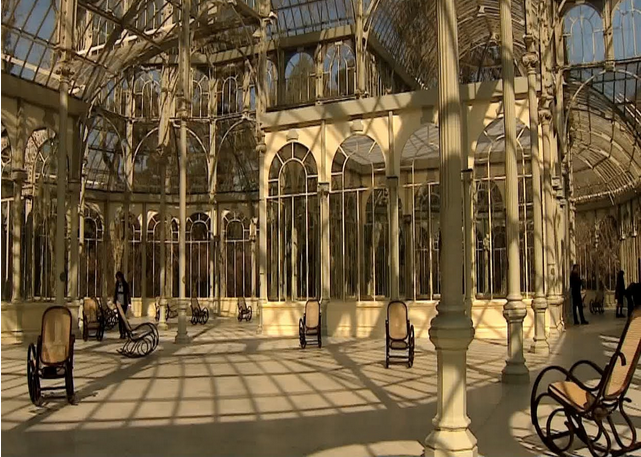 Terrain de jeux d’ombre et de lumière, propice à l’évocation des fantômes, le théâtre-hôtel de DGF recherche l’attraction, il développe le mystère des rencontres, multiplie les impressions et en règle la mise en scène comme on règle les focales pour dissoudre ou affermir les premiers plans. Les projections des apparitions vidéo de DGF obéissent à cette logique fascinante de l’appropriation progressive des différentes icônes dans lesquelles l’artiste se métamorphose. Fitzcarraldo incarné par DGF émerge lentement au bout d’un couloir envahi de pénombre. Son spectre constitue l’une des figures d’un opéra à venir, M.2062, dans lequel elle sera tour à tour Lola Montez, Edgar Allan Poe, Ludwig II, Scarlett O’Hara. Le procédé pour troublant qu’il soit ne vise pas à la ressemblance, il s’inscrit dans la construction générale qui organise patiemment un parallèle entre l’hétérogénéité des espaces et les identités flottantes des personnages endossés par DGF. Et ce parallélisme justement serait celui qui conforme les fragments de notre modernité, celle qui vient et dans laquelle tant bien que mal nous nous projetons. Notons aussi que les films comme les plateaux scéniques partagent des éléments communs, une manière d’accentuer le va-et- vient des obsessions. Hanté par DGF, Fitzcarraldo, le héros du film éponyme de Werner Herzog tient dans ses bras un gramophone, instrument que l’on retrouvera dans Splendide Hôtel (annexe) (2015), version partielle d’un environnement créé en 2014, au Palacio de Cristal de Madrid. Cet extraordinaire bâtiment transparent construit dans les jardins du Retiro, en 1887, initie le point de départ de notre trajectoire. L’occasion de revenir sur une année particulièrement fertile dont DGF pointe les correspondances subjectives, elle s’accorde en effet à la naissance de Duchamp, à une lettre de Rimbaud adressée du Caire, à l’incendie de l’Opéra Comique… Tout cet écheveau de coïncidences est laissé à l’arbitrage du spectateur à ceci près que ce décryptage infini échoue devant l’unique porte close de l’hôtel, la chambre 19, dont seul l’écrivain Enrique Vila Matas détient la clé. Inaccessible, enfouie dans le secret cette pièce ressemble peut-être aux livres dont s’entoure DGF pour élaborer à partir de cette réserve fictionnelle des plans d’évasion défiant toutes les formes de contrôle et d’autorité.